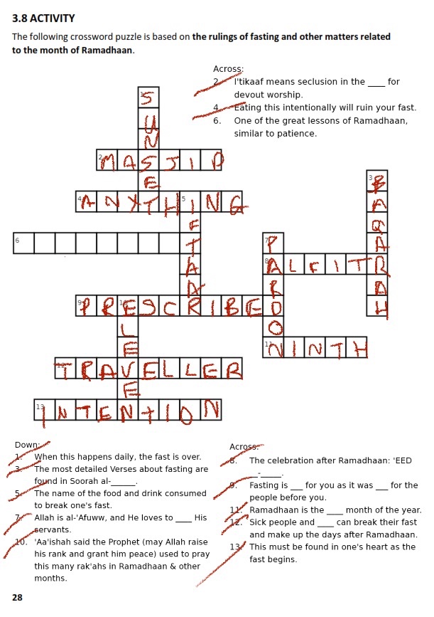 Bakkah Publications On Twitter Can Anyone Help Our Brother Aboo Khaalid With The Last Answer In This Crossword Puzzle About Fasting Ramadan As Found On Page 28 Of Ramadhaan Lessons From The