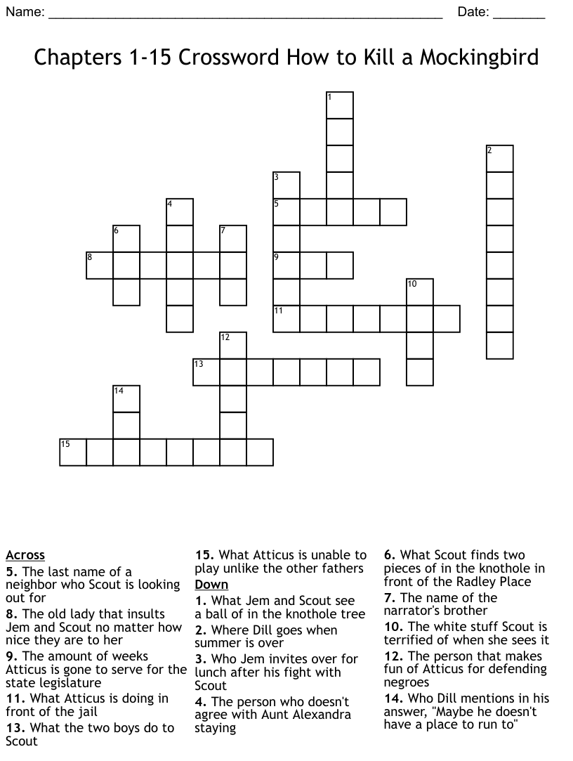To Kill A Mockingbird Crossword Puzzle Chapter 1 And 2